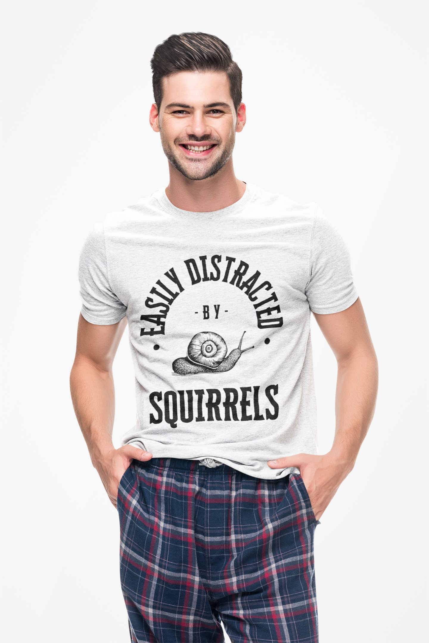 Easily distracted T-Shirt perfect for those who have a fun and are easily distracted...SQUIRREL! This shirt is ideal for casual wear, lounging at home, or running quick errands, making it a great gift for birthdays, holidays, or just to brighten someone's day.